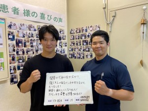 こちらに通う前は坐骨神経痛の様な前屈も後屈するにも痛みが出ていたのですが、施術をしていただいて改善することが出来ました。