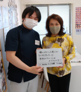 通院前と比べると姿勢もだいぶ良くなってきたので姿勢を良くしていきながら臀部の痛みもこの調子で改善していきたいです。